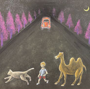 ちいさなあかいくるまが、よるのみちを迷いながらとぼとぼと走ってゆきます。